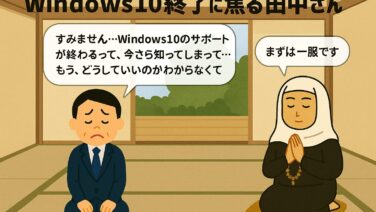 パソコンを買替ずに使い続ける方法 娘の一言で焦った田中さん、灯子尼に救われる──Windows10延長サポートの巻 Windows10の延長サポート“ESU”に迷う田中さん。灯子尼の説法が導く、安心と知識の物語 2025.09.19 2025.09.28 パソコンを買替ずに使い続ける方法節約