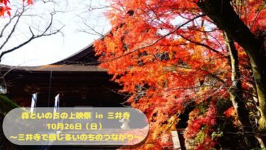 つぶやき 森といのちの上映祭 in 三井寺|映画と自然体験で心を整える一日 2025年10月26日開催『森といのちの上映祭 in 三井寺』。映画『杜人』『いただきます』の上映に加え、森での自然体験や対談講演も。Peatix申込方法もやさしく解説。国宝・三井寺の拝観も無料で楽しめます。 2025.09.17 2025.09.22 つぶやき