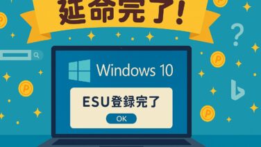 パソコンを買替ずに使い続ける方法 【実録】Windows10延命大作戦 |Microsoft Rewardsポイントで(ESU)登録完了! Windows10のサポート終了後も使い続けたい方へ。Microsoft Rewardsポイントを使ってESU登録を無料で完了した実録レポート。2025年対応の延命方法をわかりやすく解説! 2025.07.29 2025.09.28 パソコンを買替ずに使い続ける方法節約