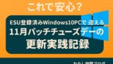 • ESU登録済みのPCには、2025年11月のパッチチューズデー(11月11日頃)から更新が届く可能性が高いと考えられます。