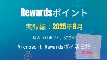 Microsoft Rewards活用術 Microsoft Rewardsポイ活日記3:実録編(2025年9月)Rewardsポイントの謎に迫る Microsoft Rewardsの獲得ポイント数の“謎”に迫る実録レポート。日々の記録から見えてきた不思議な加算ロジックとは? 2025.10.11 2025.10.14 Microsoft Rewards活用術ポイ活